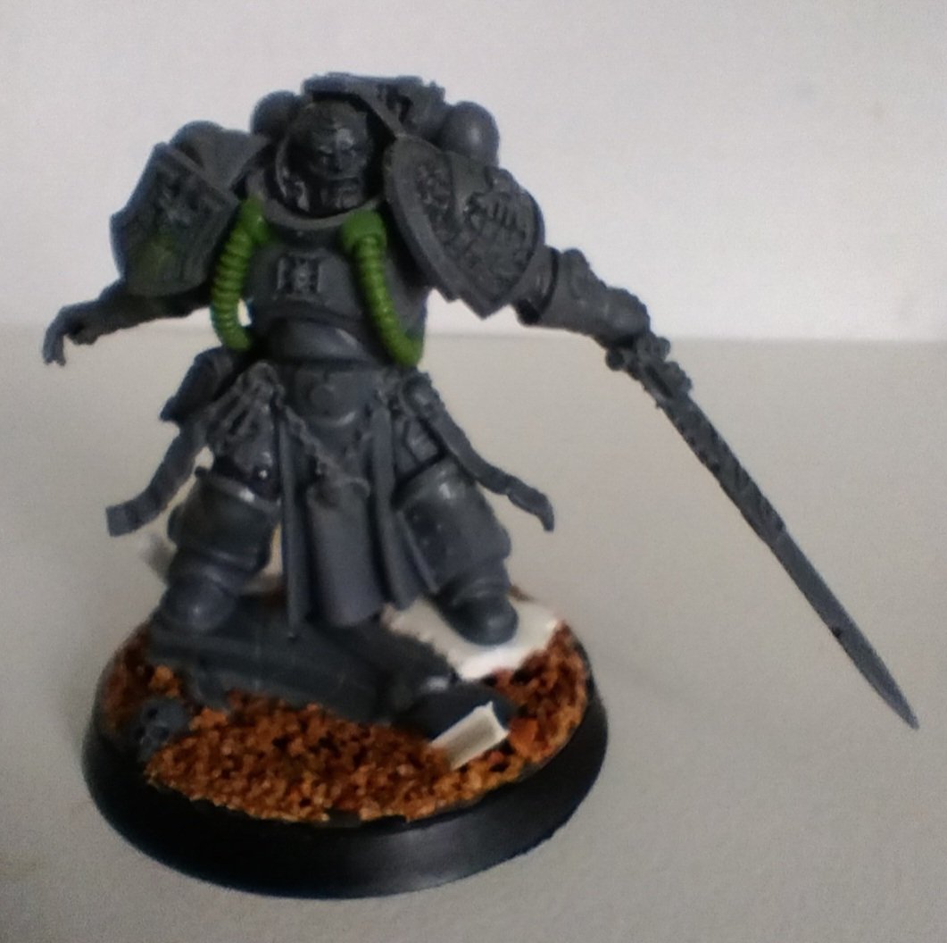 Obviously, it had to be a Librarian, but I felt that the official minis didn't really have a lot of bare armour to show off the Legio scheme and honours. So a conversion it would have to be! His body is a Sternguard with bits added from the Phobos Librarian, as well as a few of the older Libby plastic kits.