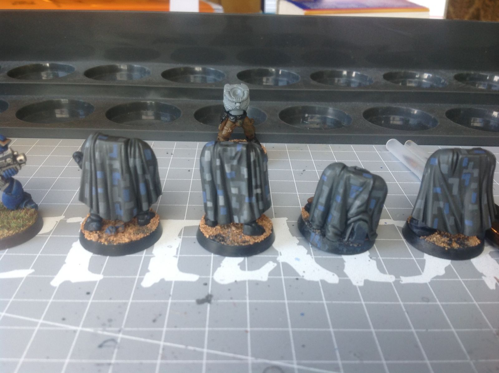 Scout cloaks cameo; 1 complete, need to add the final color to the others