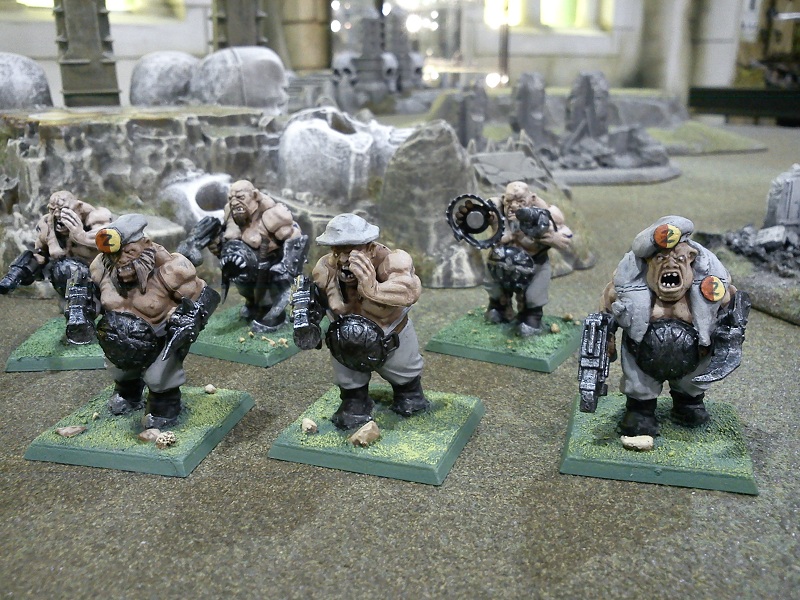 My Ogryn conversions - actually Warhammer Ogres with flak jackets, helmets and berets sculpted from Milliput