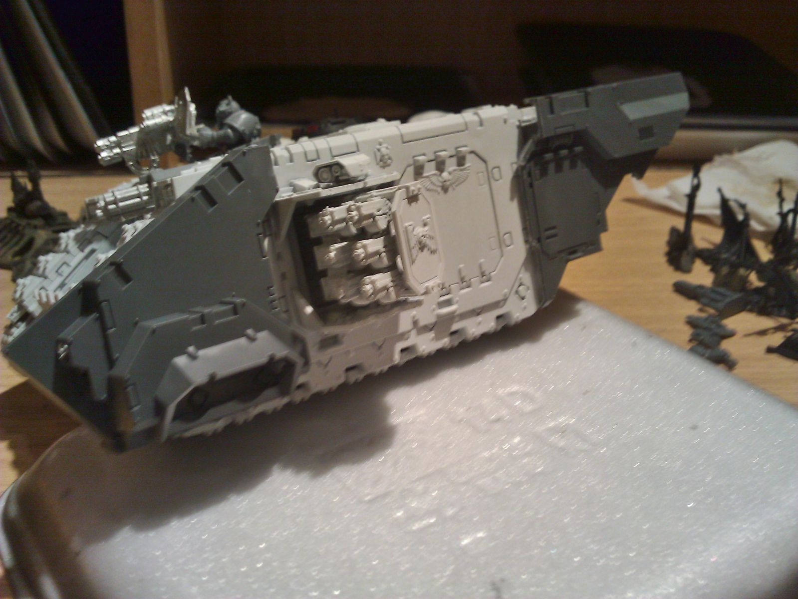 here was my first concept, a storm raven should be big enough to hold 12 space marines, and