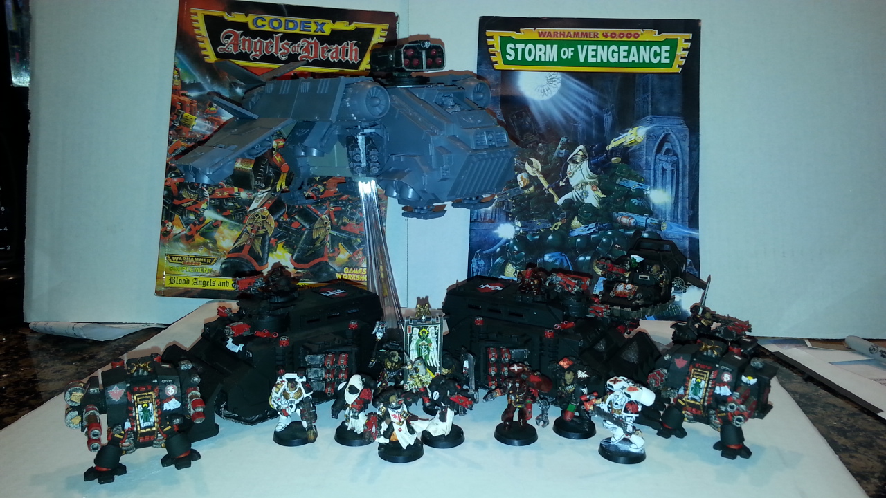 THe Rhinos behind them have FW Repressor conversions because I liked the look of them and how you could actually fit ten marines in there. The hurricane bolter sponsons are there because I couldn't put them on my landraiders. I mean, really!? Bolters on a main battle tank as a mainweapon? Thats a hell of a step down from lascannons... I cant do it. Twin Hvy Bolters are about as far down as I can go, and thats only on my Mk II conversion Prometheous Command Raider.