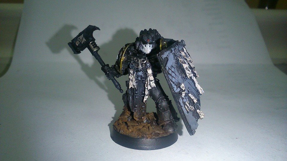 The Master of Shadows, equipped for a boarding action with Mk3 artificer armour, thunder hammer, and the Shield Eternal.