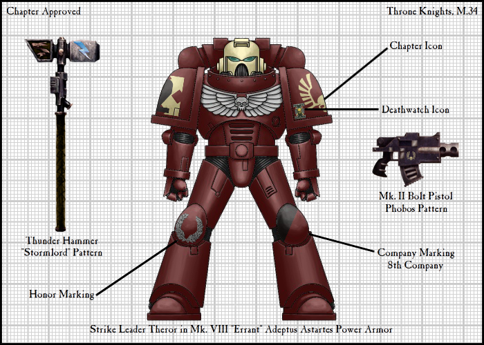 Chapter Approved livery: Throne Knights Chapter (M.34) [example of basic Veteran scheme (bone-colored helmet) with honors]