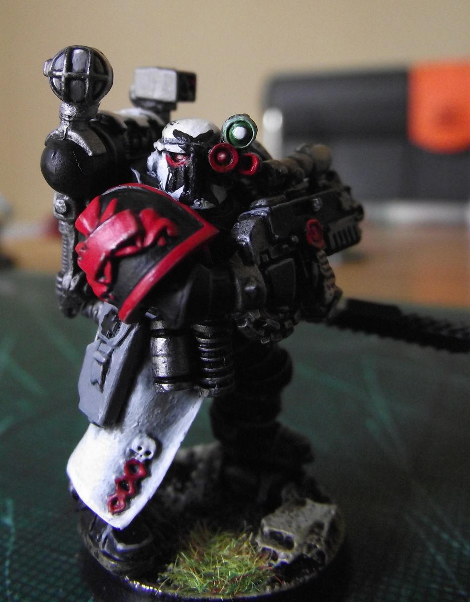 Detail shot of the Apothecary's shoulder pad. I painted the shoulder pad in the red and black style because I wanted him to represent a member of the Sword Brethern (not sure how an inquisitor would convince a Marshal to relinguish his personal physician :S).