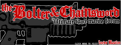 The ORIGINAL masthead for the 1st iteration of the Bolter and Chainsword! Complete with a link to the long lost and forgotten call to visit Lord's Realm, where I used to have rules and images of the Emperor's Saints. Thanks Kurgs for digging this out of the archives!