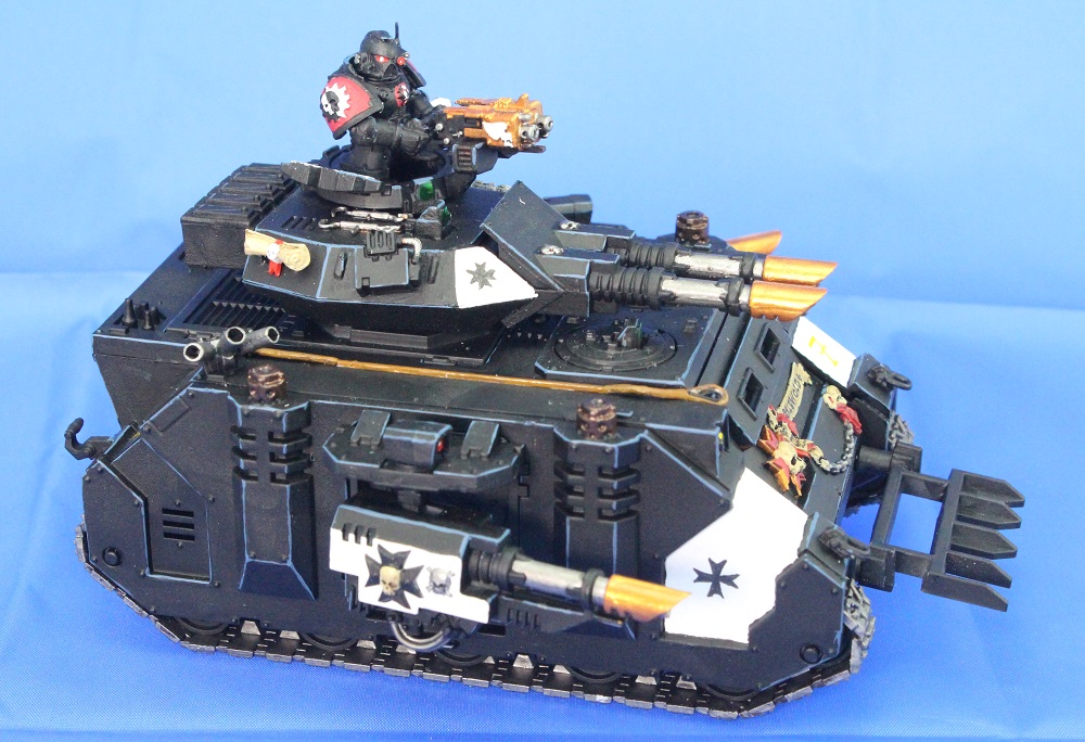 Black Templar Predator Annihilator with Lascannon sponsons, storm bolter and blade.