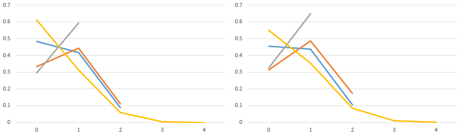 Vertical Axis = Probability of that outcome in any one volley