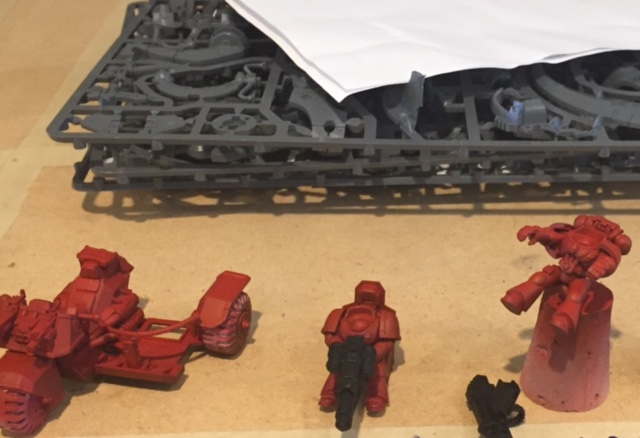 WIP Blood Angel Attack Bike primed in red (weapons in black)