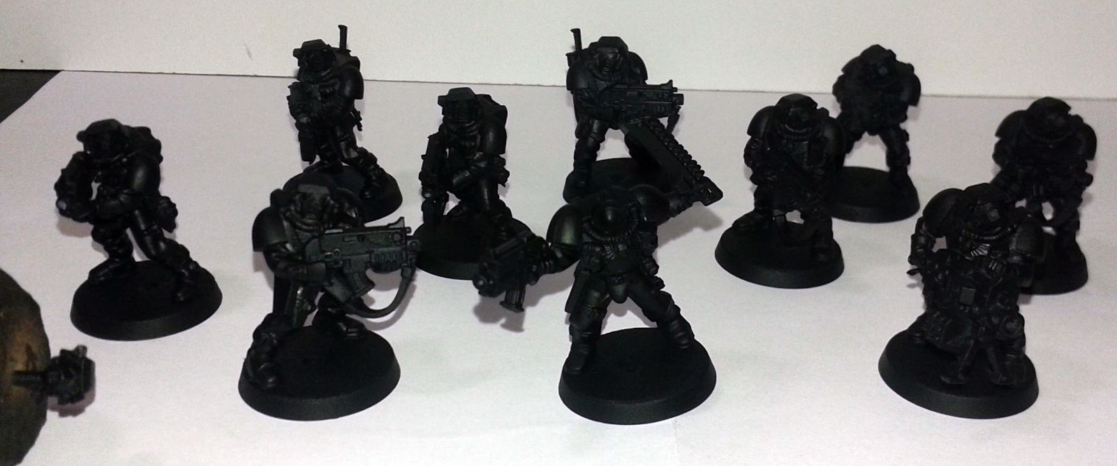 Ultramar Battle Muster 2016 vow 2. Nine scouts with bolters, one with heavy bolter undercoated ready for painting.