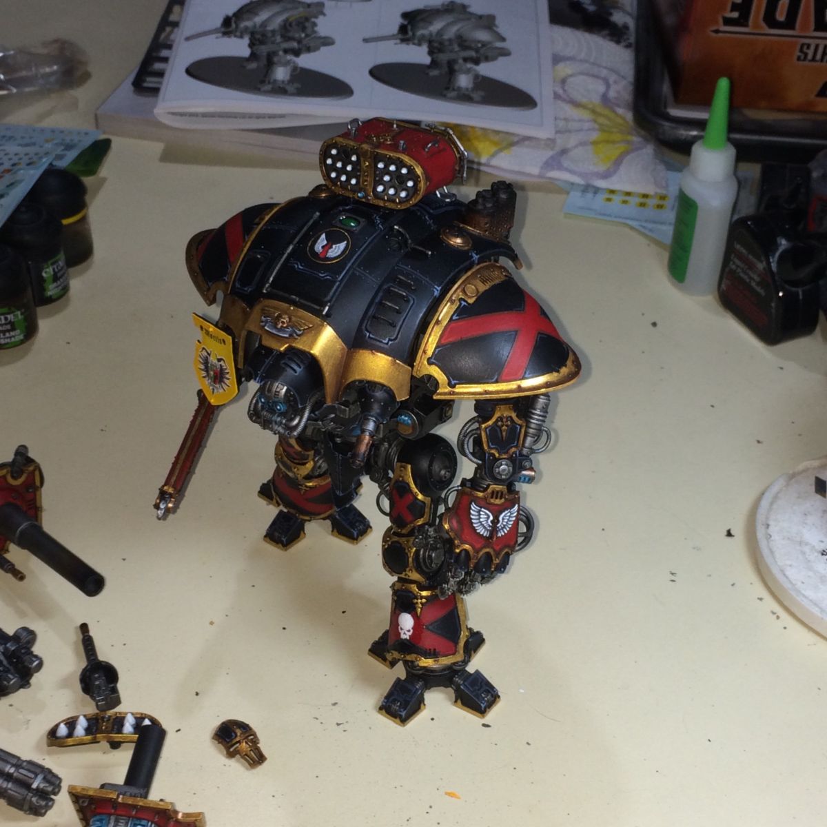 Imperial Knight of House Cadmus (named Pareus) currently in service to the Blood Angels as a Freeblade.