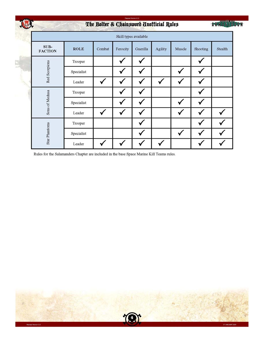 Skills (Red Scorpions, Sons of Medusa, Star Phantoms)