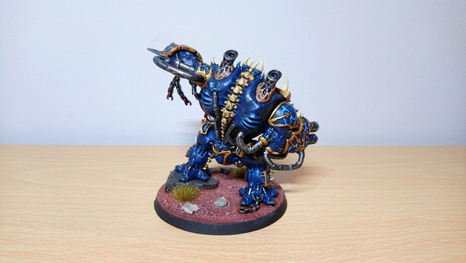 Malgar 'the Crazed' was once the Brotherhood's leader, yet lost his sanity to Khorne after leaving the door of his soul open too long. Mortally wounded by Valrek in an honour duel, Malgar was interred into a Dreadnought as a tool to be let loose like a rabid beast of terror against the Brotherhood's enemies. His corruption to Khorne warped his Dreadnought chassis into a wonder of terror and fleshmetal.