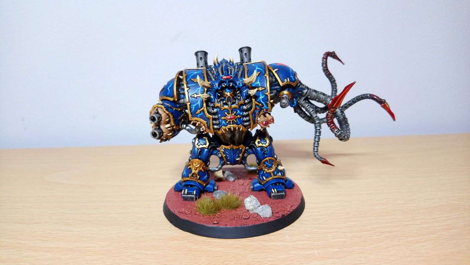 Talodon was Varlek's second in command but dealt a grievous blow during the Horus Heresy from an Imperial Fist Captain. To preserve his life he was interred into a Dreadnought. Talodon embraced his new chassis as a vehicle of destruction to terrorise and flay his enemies and had the ship's artificers and servitors fit a scourge to enchance this further.