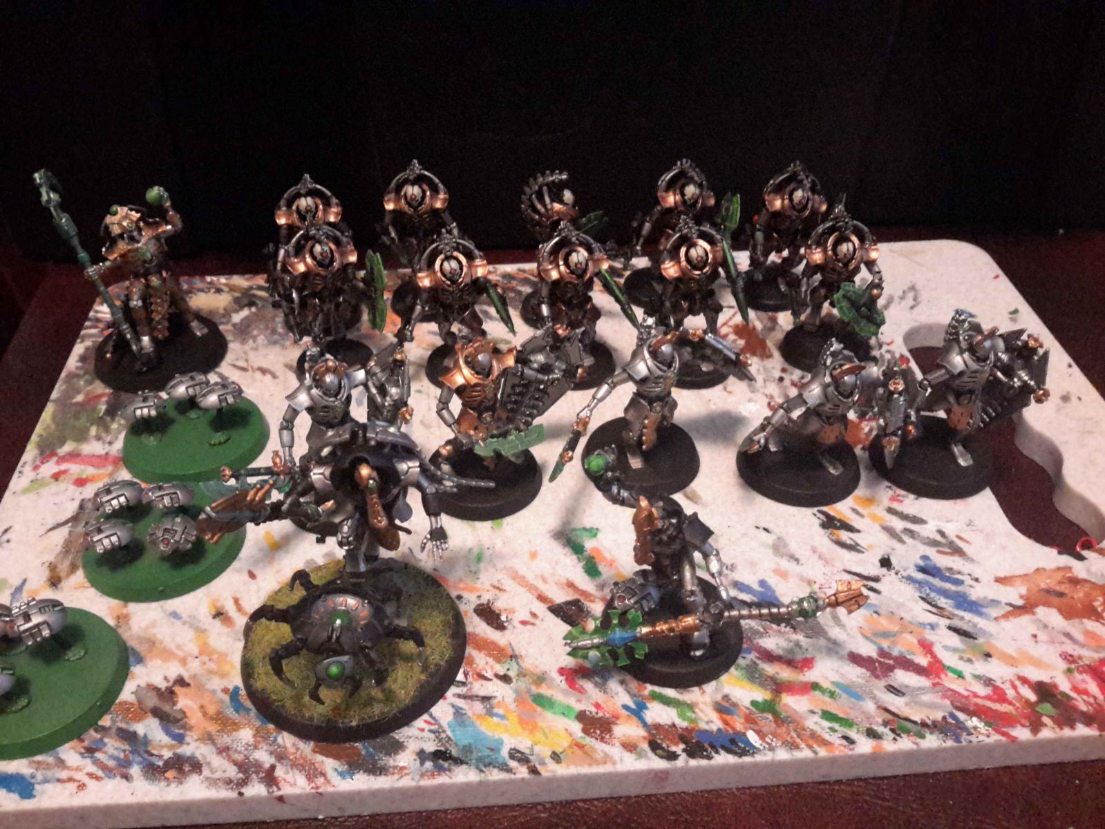 finished painting the necron overlord, 3 scarabs, 1 cryptek, 1 cryptek with cloak, 10 pratoerians.