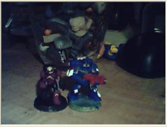The servitor is about a millimeter shorter. That's one of my better painted Ultramarines, they both look exceptionally bright because of the lighting.