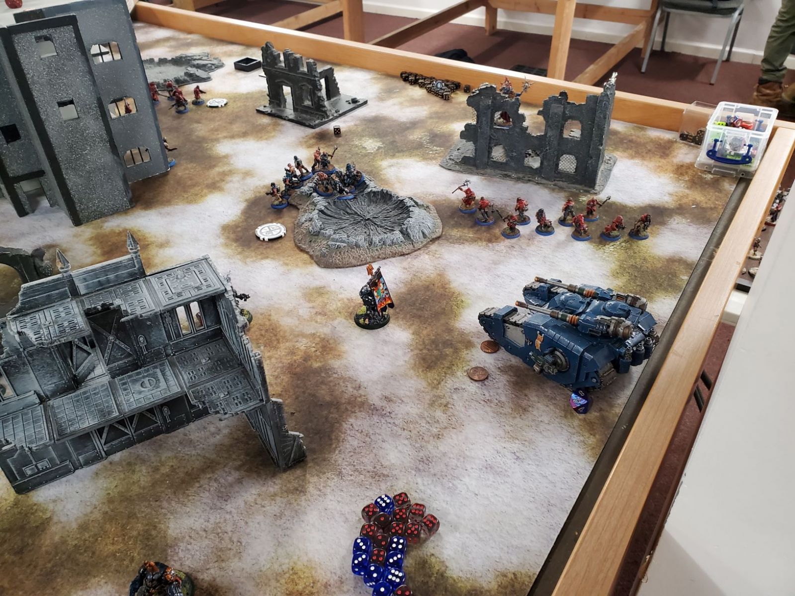 My Deathwing Ancient finally had to do something besides standing around looking cool and handing out buffs. Though this was a good reminder that he's still a 2+ 5++ 5+++ 5 wound character with 5 power fist attacks on the charge. He was easily able to finish off a crippled Venomcrawler.