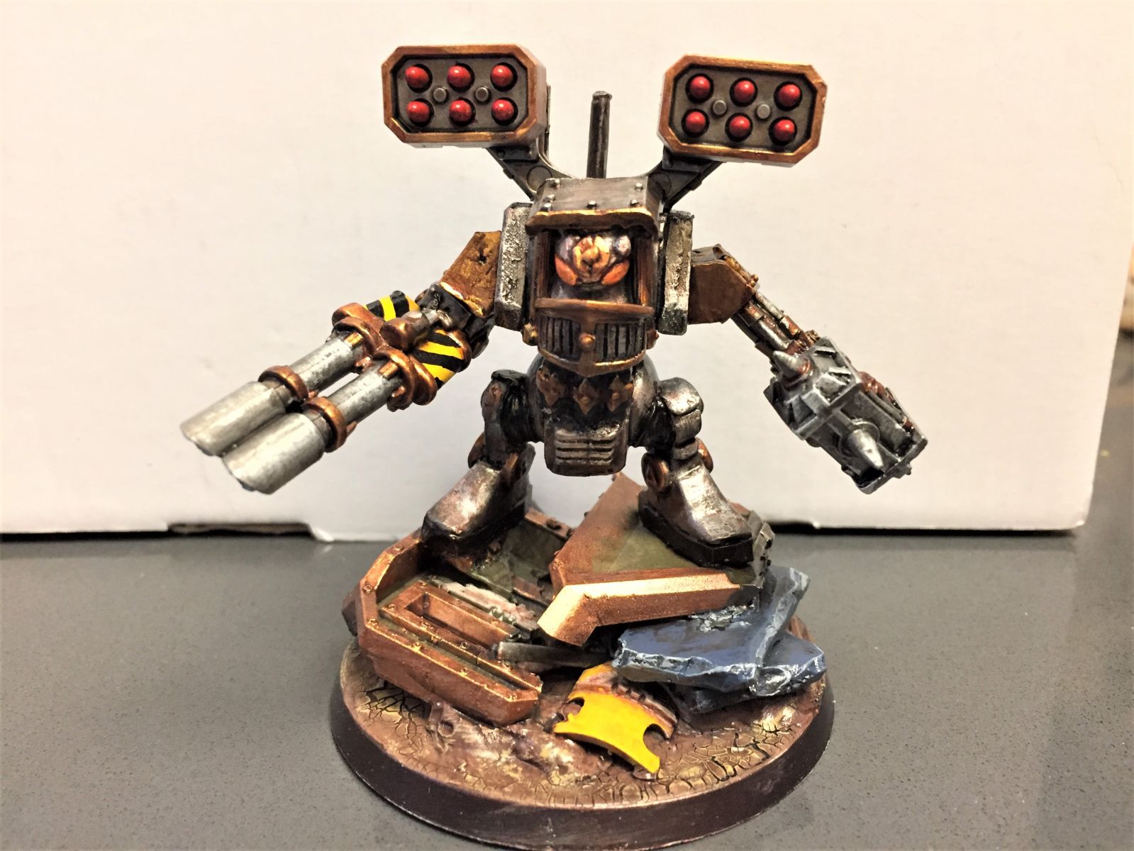 I magnetized the TL Lascannon, so he'll probably go with a Kheres assault cannon most of the time. And he'll get a flamer on his hammer arm, just had to use the hammer, it's too great of a bit! Havoc Launcher on top (which I thought could be a cyclone launcher but apparently that's 40k Hellforged Contemptors...good for if I ever play 40k again).