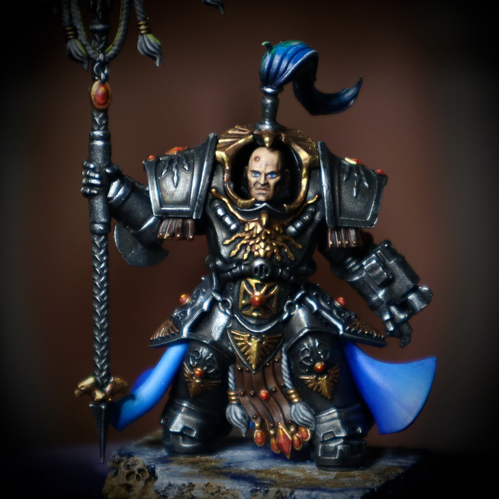 Here is the combat specialist Henry the Old Slayer. It's fully plausible that he's the best melee fighter in the galaxy. Normally the oldest and most skilled fighter becomes the leader, but he has no interest in leading, just slaying. His molten spear has the shape of a banner, but make no mistake - it's a lethal weapon.