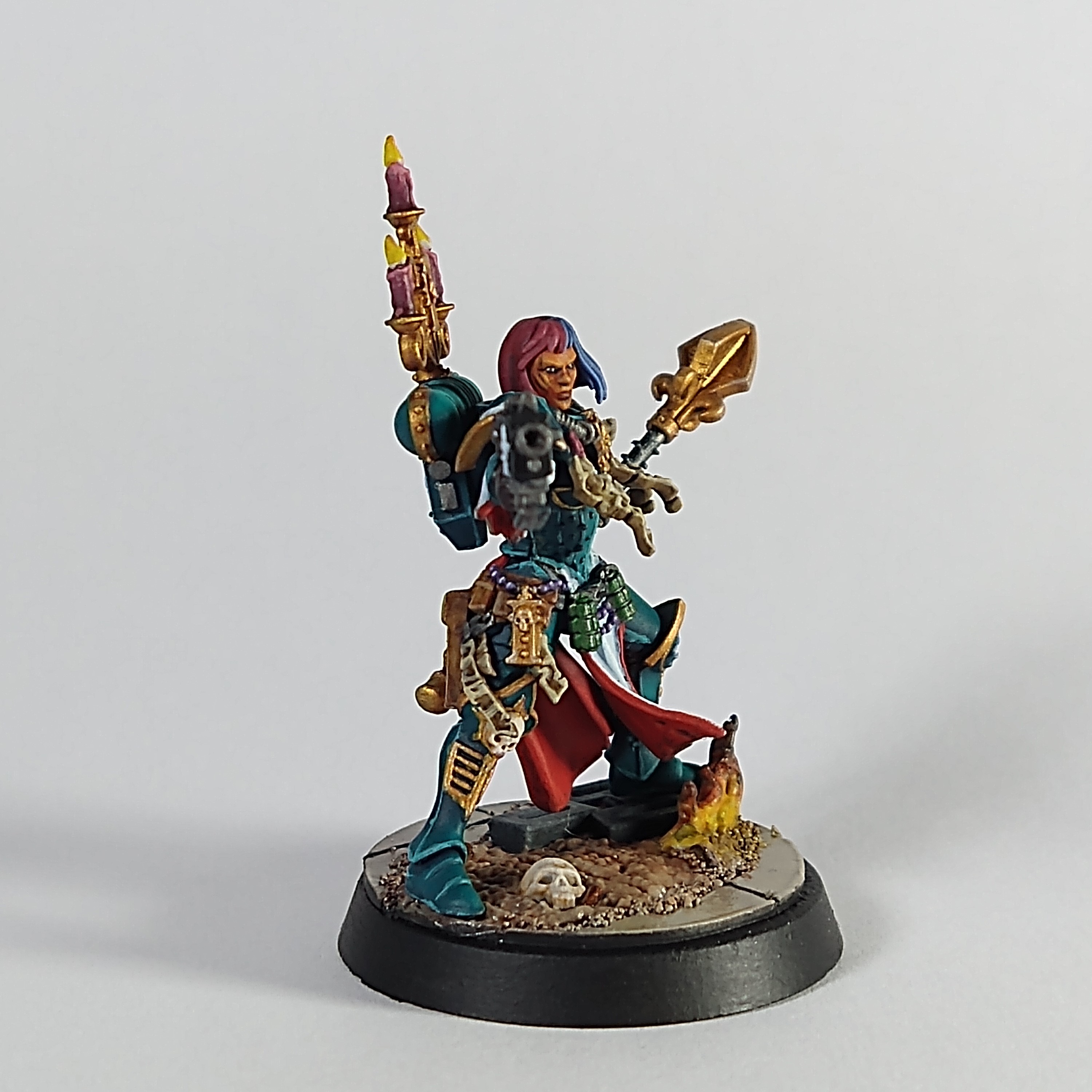 This is my best face yet. I followed the Medium Flesh guide on Warhammer+. I don't have Louise's control, but I'm very happy with the result. And the hair was a whim, and I love it