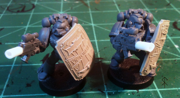 Two more of the radical Inquisitor's Deathwatch marines. Those are maxmini "mechanical shields".