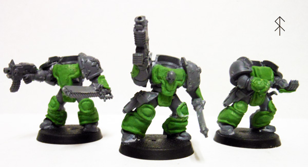 Using some putty to create some MkIII armour for an Iron Warriors squad. I've got the proper Forge World heads, and I'm going to modify some old Berserker backbacks, and I got the shoulder pads from the GW website, but damned if I can afford the FW figures. So, you know, green stuff experiment. I'm sure I'll perfect my technique before I'm through...