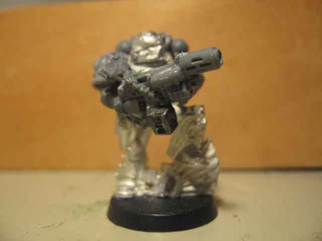 Dreadnought Baraziel Posted January 7, 2009 Author Share Posted January 7, 2009 Hi folks, quick update: Filled in the thighs for my Sergeant and added a scope stolen from my Co. Vet. who will shortly be armed with some CC weps. Got this guy today, and he's tall enough to be True-Scale, so why not? Stole the Combi-Melta from my CV after fixing the barrel (thanks for spotting that Brother Richard, I missed that) and stuck it onhim after spending 20 frustrating minutes tearing the Power Fist off. I had to cover a gap between the arm and body with a purity seal though. Scale shot of the two veterans with a regular guy. captain_shrike, I used some tiny rocks I found on a beach in Wales. I was just there on holiday, and I happened to have somewhere to take them, so I thought I might as well. I suppose cut-up sprues might work just as well though. Link to comment https://bolterandchainsword.com/topic/156596-dbs-painting-challenge/#findComment-1833561 Share on other sites More sharing options...