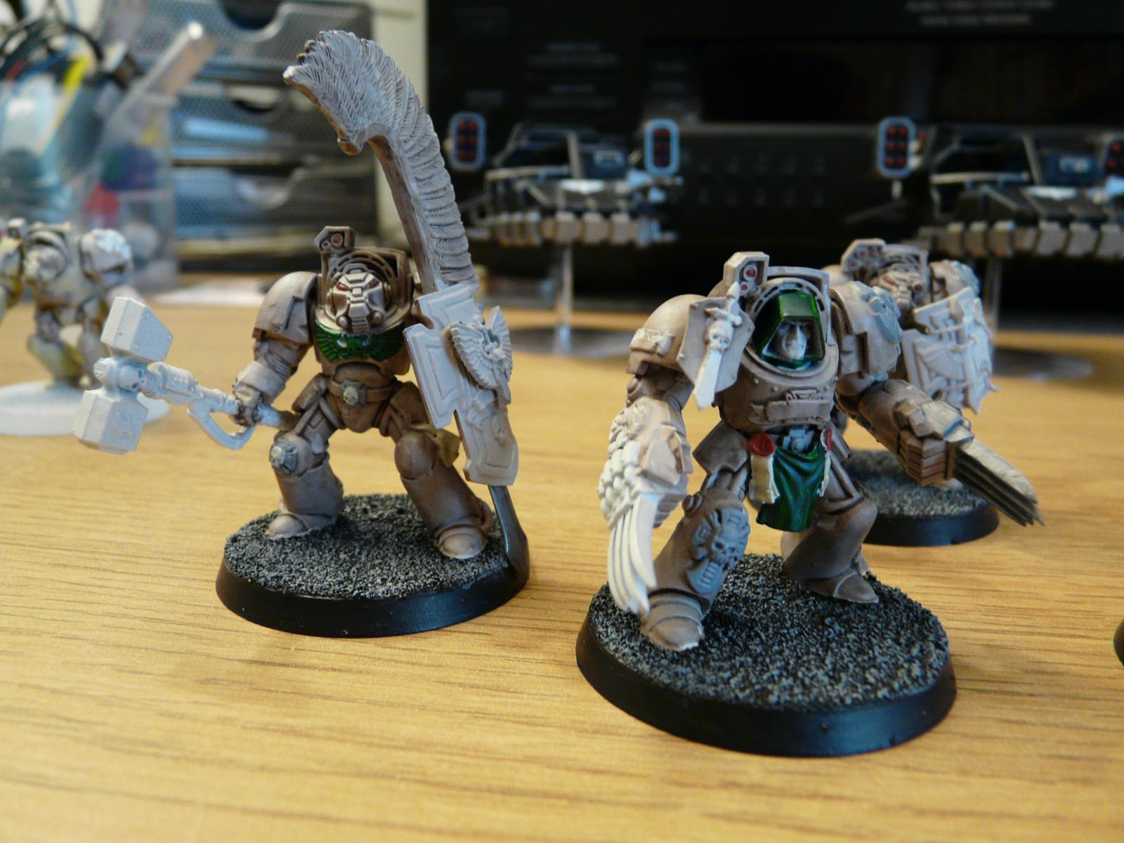 skink Posted May 4, 2011 Author Share Posted May 4, 2011 Thanks for the continued encouragement guys! The cyclone conversion was a matter of finances: I wanted them on every squad, but post-FAQ the Cyclone bit (plastic and metal alike) were as rare as hen's teeth and expensive to boot. These are HK missiles on their side and glued together; cheap and simple! The maul is two DA maces glued to a stormbolter arm; I needed another hammer! Work means I'll spend the next couple of months abroad, so I won't be updating anytime soon, but I did take all the guys featured so far and a RW meltagang against Slannesh Marines and nearly tabled them (fluffed a 4 in 6 chance of blowing up the final tank, having only lost 7 Terminators, 4 bikes and a speeder); a combination of freshly painted models and him using my dice caused Lady Luck to smile on me! Lash against footslogging Terminators is lethal btw, routinely undoing multiple turns of positioning. Any sneaky ideas to combat this, or do we just kill the Sorcerer ASAP?! Something that did come was the manager of the store wanting me to base the metal Terminators on 40 mm bases. Part of me would rather they stayed on 25 mm and I figure this is legal as GW still supply them on the smaller bases, but I don't really care and local tournament rules (which I would like to start attending once the painting is done) dictate that all Terminators must be fielded on 40 mm bases. Should I stick to my guns and keep them on the smaller bases (for no real reason in particular!!) or should I just pop them on the bigger ones? Will there be an in game difference? Link to comment https://bolterandchainsword.com/topic/228688-wip-da-shots/#findComment-2746479 Share on other sites More sharing options...