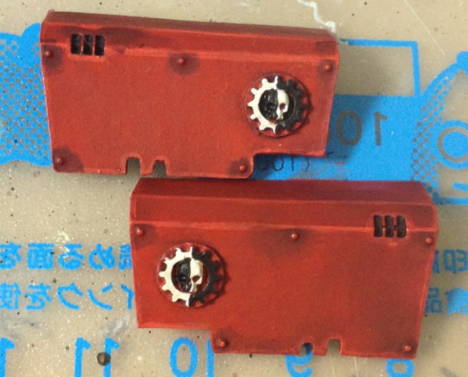 Added smoke launchers (a bit left over from an LSS) and searchlight (care of an Aegis defence line), and the left-side panel, with a kneeling man (Akhenaten himself, perhaps) under a sun (done as the 1kSons legion symbol). And stuck an `VX` in there.