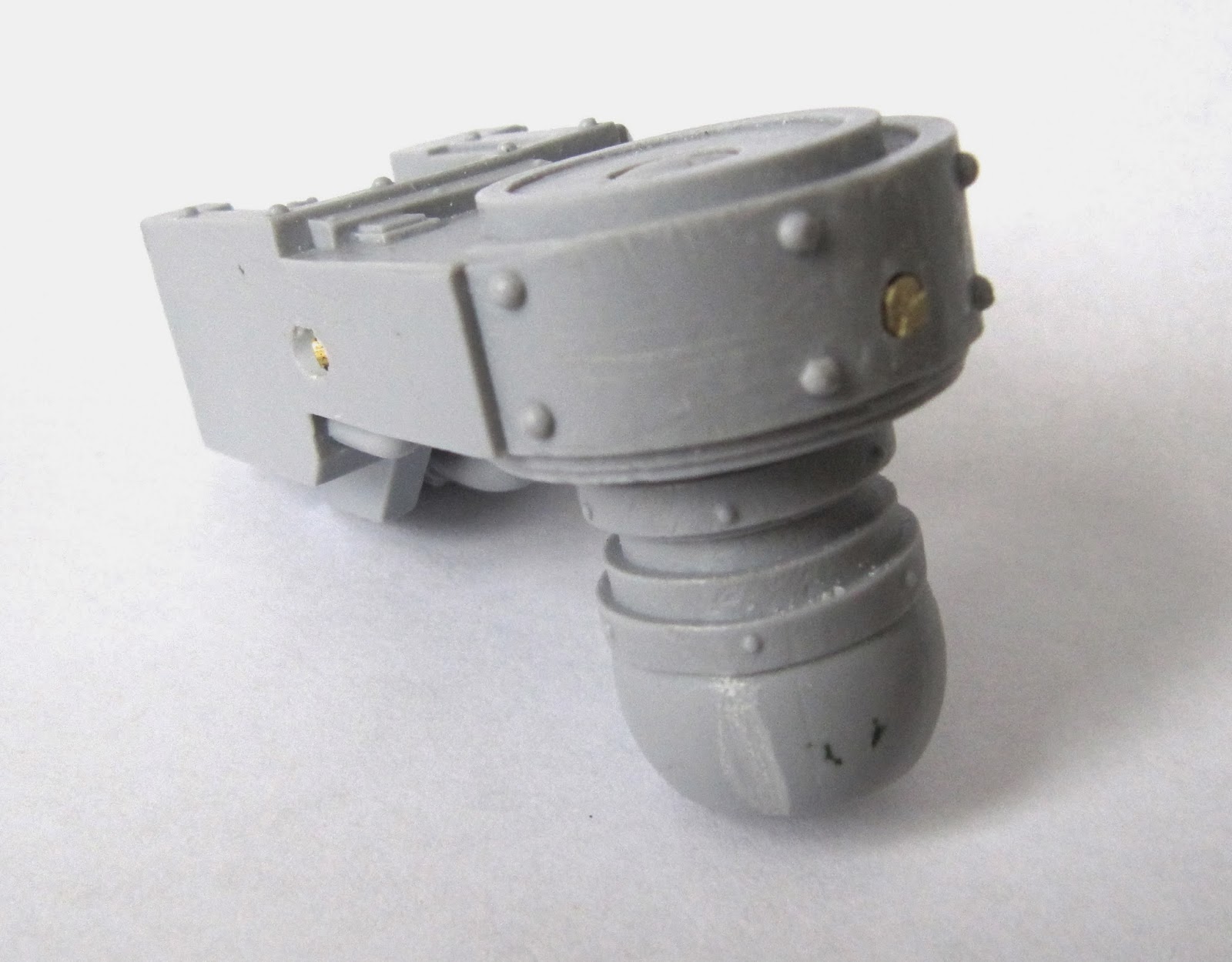 Durfast Spiritwolf Posted February 2, 2014 Author Share Posted February 2, 2014 Back to mundane cleaning, pinning and assembly this weekend. http://1.bp.blogspot.com/-caBmPkaFc90/Uu447gsGe2I/AAAAAAAAArw/OeMDR5-9hCc/s1600/IMG_1486.JPG The first pin goes all the way though from the outer edge of the shoulder. This will carry the weight of the weapon. Green stuff is then used to hide the hole. The 'arm' retains a degree of backwards and forwards movement. So a second pin comes in from the rear to fix it in place. This pin only goes halfway into the shoulder joint and the hole will be hidden by the torso: http://1.bp.blogspot.com/-uKCE0I0iD-s/Uu446xVwBMI/AAAAAAAAAro/NSNr5lGCWXA/s1600/IMG_1485.JPG The base is then shaved down ready to receive a magnet, which is greenstuffed and glued into place. http://1.bp.blogspot.com/-N2qd47RLlbo/Uu44-MJ4aLI/AAAAAAAAAr4/4l4C0T2Z7_g/s1600/IMG_1487.JPG The weapon can now be rotated left and right. Time for undercoating... Link to comment https://bolterandchainsword.com/topic/283743-legio-mortis-aka-durfast-builds-a-titan/#findComment-3584706 Share on other sites More sharing options...