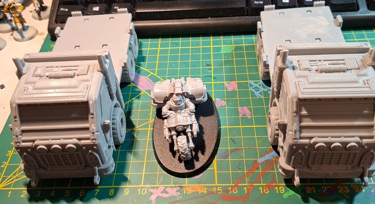 Gorgoff Posted 5 hours ago Share Posted 5 hours ago @JeffJedi I had the idea as well and probably gonna do it next week as well. It feels just better and is easier to handle at t he table to have them printed. In my case it will be the Imperialis Militia. They won't change the pdf anyway so no worrier that it may be futile to print them and as you said it isn't that costly to do. I even thought about converting them with proper background like the books in 1ed and a cover but that would be the fancy variant. Someone in a 2ed 40k server did this the other day with the oldschool necromunda rules and it looked awesome. Speaking of awesome @Pacific81 that tank looks brilliant already. I am still at the vevhicles for my IM. That's two trucks to haul my dudes to the front. I bought them cheaply at some known chinese online shop. The quality of the print is questionable but still ok for playing. The cool thing about those was that no glue was needed to actually build them. The parts good just jamed together like that. I also am building my second trike and those on the ither hands are a piece of work each... Pacific81 1 Back to top Link to comment https://bolterandchainsword.com/topic/363129-30k-hobby-chat/page/168/#findComment-6134927 Share on other sites More sharing options...