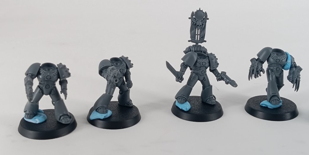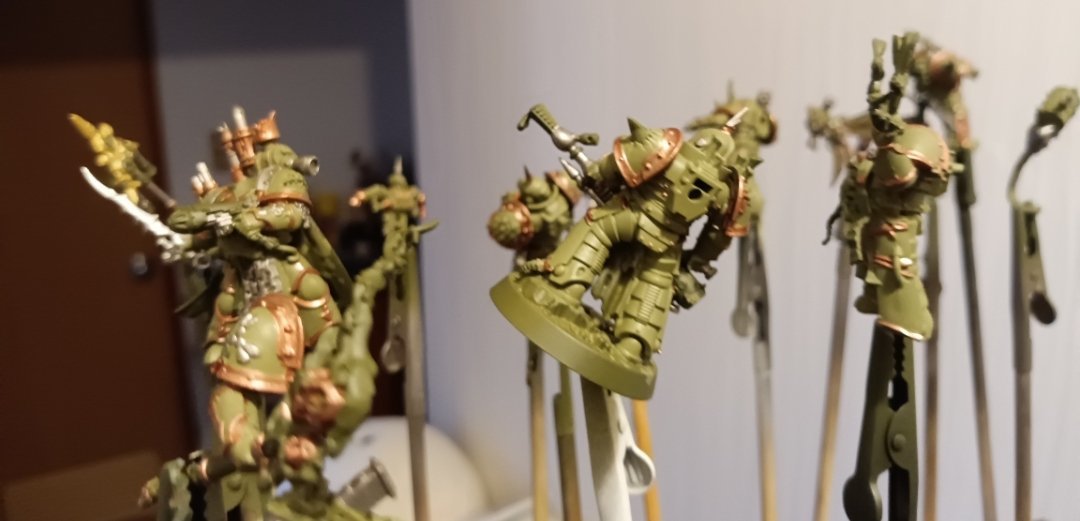 hd3 Posted September 6 Author Share Posted September 6 (edited) I've started my next unit where I build a Death Guard Plague Marine killteam and use them also as plague marines in my Alpha Legion for more durable backfield objective holders. I wanted an undercoat which was close to the base colour so I used Tamiya olive drab 2 spray then brush on death guard green for a base colour in everything which took, ages. You can see the Tamiya olive drab on the base of the heavy gunner and death guard green for armour. I realized I had two things I needed to change in the plague marines. First, I didn't want any nurglings so they've all been clipped off. Second, I decided to avoid the goofier looking helms and instead use the exposed faces for those ones. I may keep them as a basing trophy set though. Edited September 6 by hd3 Tallarn Commander and Dr_Ruminahui 1 1 Back to top Link to comment https://bolterandchainsword.com/topic/377633-progress-log-alpha-legion-warband-the-last-surprise/page/13/#findComment-6131108 Share on other sites More sharing options...