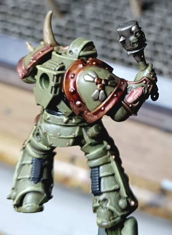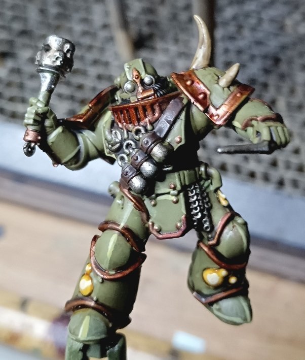hd3 Posted September 15 Author Share Posted September 15 Very slowly making progress on my plague Marine kill team. I'm basically following Duncan Rhodes death guard tutorial, at least for the base colours but with citadel paints. In spite of constant interruptions, I've managed to get all the brass trim with Balthazar gold and the metallic grey with Leadbelcher. I made two exceptions though, the nurgle icon I did in liberator gold since I thought a god's icon would look fancier. The other is the champions' sword. It's such a jagged crude piece, I plan to go over it with astrogranite technical paint. So I did it runefang steel to help make it brighter. Firedrake Cordova, Dr_Ruminahui, Tallarn Commander and 1 other 4 Back to top Link to comment https://bolterandchainsword.com/topic/377633-progress-log-alpha-legion-warband-the-last-surprise/page/13/#findComment-6132189 Share on other sites More sharing options...