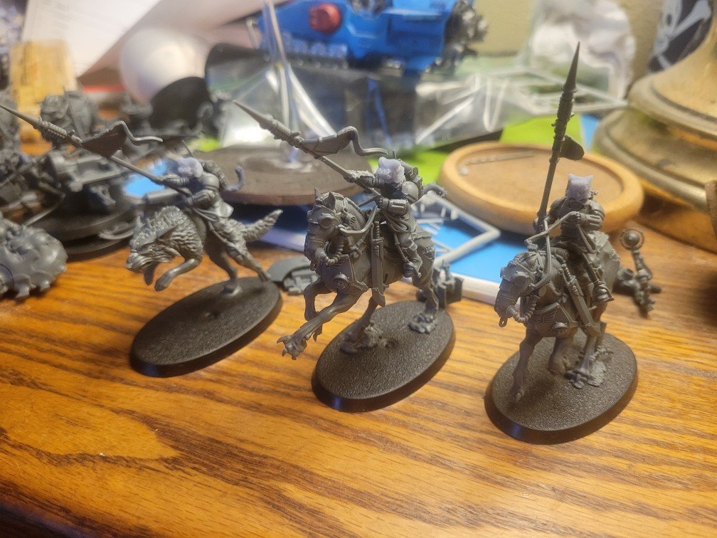 Focslain Posted September 26 Author Share Posted September 26 Bit of an update, I have been working on this army in the background but life has been odd of late. So haven’t gotten many picts. I’m going to be adding two more tanks, mostly cause these were on the docket for a bit and FLGS has a modified CtA thing going on next month as we are doing our own Orktober events and one part involves painting up vehicles. Sooo good thing I held off on these right? Adding a Rogel Dorn and a Deathstrike, which happens to be my second Deathstrike. Now while I was planning on building an artillery park for the Extralife Megabattle, the EO changed how the megabattle is going to be done and it would not be good of me to take up an entire table myself. As a final event for Orktober he wants to do a landing invasion via Battle of Gela with the Imperium and it’s allies as the Axis and the Orks and their helpers as the Allies. Which seems fitting all things considering. Anyway…. I volunteered to make the defenses, which are going to be some bunkers, gang stronghold walls and a fortress of vengeance as the center piece. I’ll be bringing the airforce and most of the artillery I was planning for this event anyway as the EO gave me about the same amount of space for setup (a 4ftx4ft area) in the middle of two tables. So will need to get another Artillery Team done as well. I did get some of the deathriders pieced together with the usual head/tail addition that I was doing for my krieg. Not sure what I’m going to do for Dreir just yet, I’m most likely going to replace the rider with something else, just not sure what yet. For now I’m going to use the Deathriders as Rough Riders, cause Deathriders are not too good without Drier and even then their meh. I was planning on finding a calvary leg set that I could attach to some cadian torsoes and use my felinid heads and have them riding ferasian wolves since the horse has the same basic stat as the wolves, for some reason. (example show in pict) Anyway while waiting the artist that makes the felinid parts I use just went and made wolf calvary for his winterguard to ride. Now while I’d like to keep this force usable in GW stores. This is just too easy a pull and much cheaper. I was thinking of keeping them close to my general felinids, but Rough Riders are from their own regiment anyway so might as well do the same here. If I want to use RR at GW I’ll just use the DR models and call them RR. Also pieced together the krieg weapon teams with flamers cause why not? On that note, another discussion in the forums got me thinking about a combined arms force. Something of a quickish recon force supported by knight armigars instead of the bulkier Russes. Force recon (990 points) Astra Militarum Incursion (1000 points) Recon Element CHARACTERS Cadian Castellan (80 points) • Warlord • 1x Laspistol 1x Power fist • Enhancement: Guerrilla Honours Cadian Command Squad (70 points) • 1x Cadian Commander • 1x Laspistol 1x Power fist • Enhancement: Survival Gear • 1x Cadian Veteran Guardsman • 1x Close combat weapon 1x Grenade launcher 1x Laspistol • 1x Cadian Veteran Guardsman • 1x Close combat weapon 1x Lasgun 1x Master Vox • 1x Cadian Veteran Guardsman • 1x Close combat weapon 1x Lasgun 1x Medi-pack • 1x Cadian Veteran Guardsman • 1x Close combat weapon 1x Lasgun 1x Regimental Standard BATTLELINE Cadian Shock Troops x2 (240 points) • 2x Shock Trooper Sergeant • 2x Close combat weapon 2x Sergeant’s autogun • 18x Shock Trooper • 18x Close combat weapon 2x Grenade launcher 14x Lasgun 2x Plasma gun 1x Vox-caster OTHER DATASHEETS Attilan Rough Riders (60 points) • 1x Rough Rider Sergeant • 1x Hunting lance 1x Lasgun 1x Laspistol 1x Steed’s hooves • 4x Rough Rider • 4x Hunting lance 4x Lasgun 4x Laspistol 4x Steed’s hooves Kasrkin (110 points) • 1x Kasrkin Sergeant • 1x Hot-shot laspistol 1x Power weapon • 9x Kasrkin • 9x Close combat weapon 3x Hot-shot lasgun 1x Hot-shot laspistol 1x Hot-shot marksman rifle 2x Hot-shot volley gun 1x Melta Mine 2x Plasma gun 1x Vox-caster ALLIED UNITS Armiger Helverin (140 points) • 2x Armiger autocannon 1x Armoured feet 1x Questoris heavy stubber Armiger Moirax (150 points) • 1x Armoured feet 1x Lightning lock 1x Rad cleanser 1x Siege claw Armiger Warglaive (140 points) • 1x Meltagun 1x Reaper chain-cleaver 1x Thermal spear Though I could replace the Cadian Castellan with another command squad, I’d lose an order but could spread the orders better and have two blocks for them as opposed to one. Something to think on and allows me to use some knights on the side and even possibly paint up a new squad just for this type of support role. Tallarn Commander 1 Back to top Link to comment https://bolterandchainsword.com/topic/385261-386th-teradox-regiment-felinid-mixed%C2%A0/#findComment-6133880 Share on other sites More sharing options...