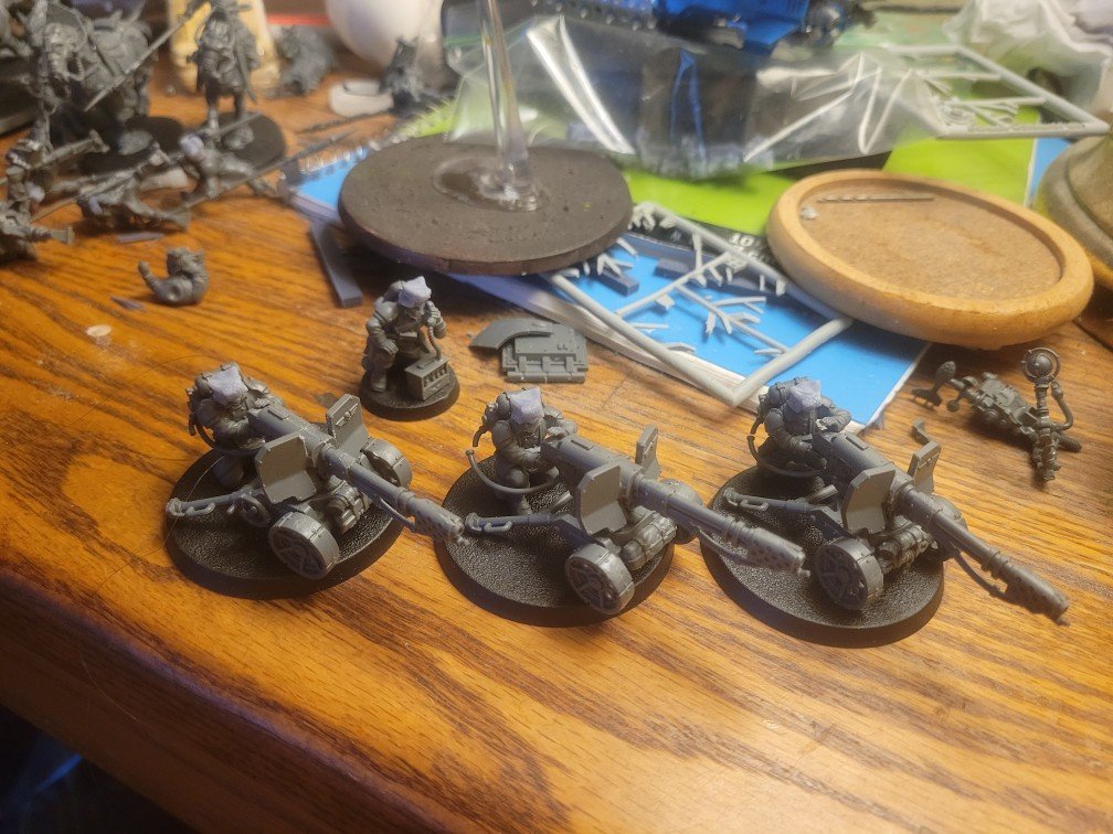 Focslain Posted March 19 Author Share Posted March 19 Wanted to give a little update. Sorry for the poor pict, but I wanted to show some progress. Nearly finished 10 kriegs and 6 cadians, plus working on a fortification a buddy tossed me. I do need to take stock of what I have infantry wise so I can fill in the gaps and make whole squads better. At least on the cadian and later the scion sections. The krieg are easy since they were just started. Hopefully I can get a game in this weekend. With the points update I had to drop the FOBs in the 1K list, replacing it with the Artillery Team (heavy siege gun) and like to see how that works. It has fewer shots/hits, but will hit way harder. Will report in once I get to test it out. Tallarn Commander 1 Back to top Link to comment https://bolterandchainsword.com/topic/385261-386th-teradox-regiment-felinid-mixed%C2%A0/#findComment-6100703 Share on other sites More sharing options...