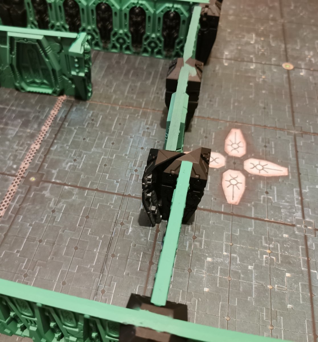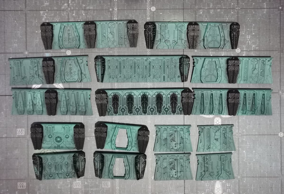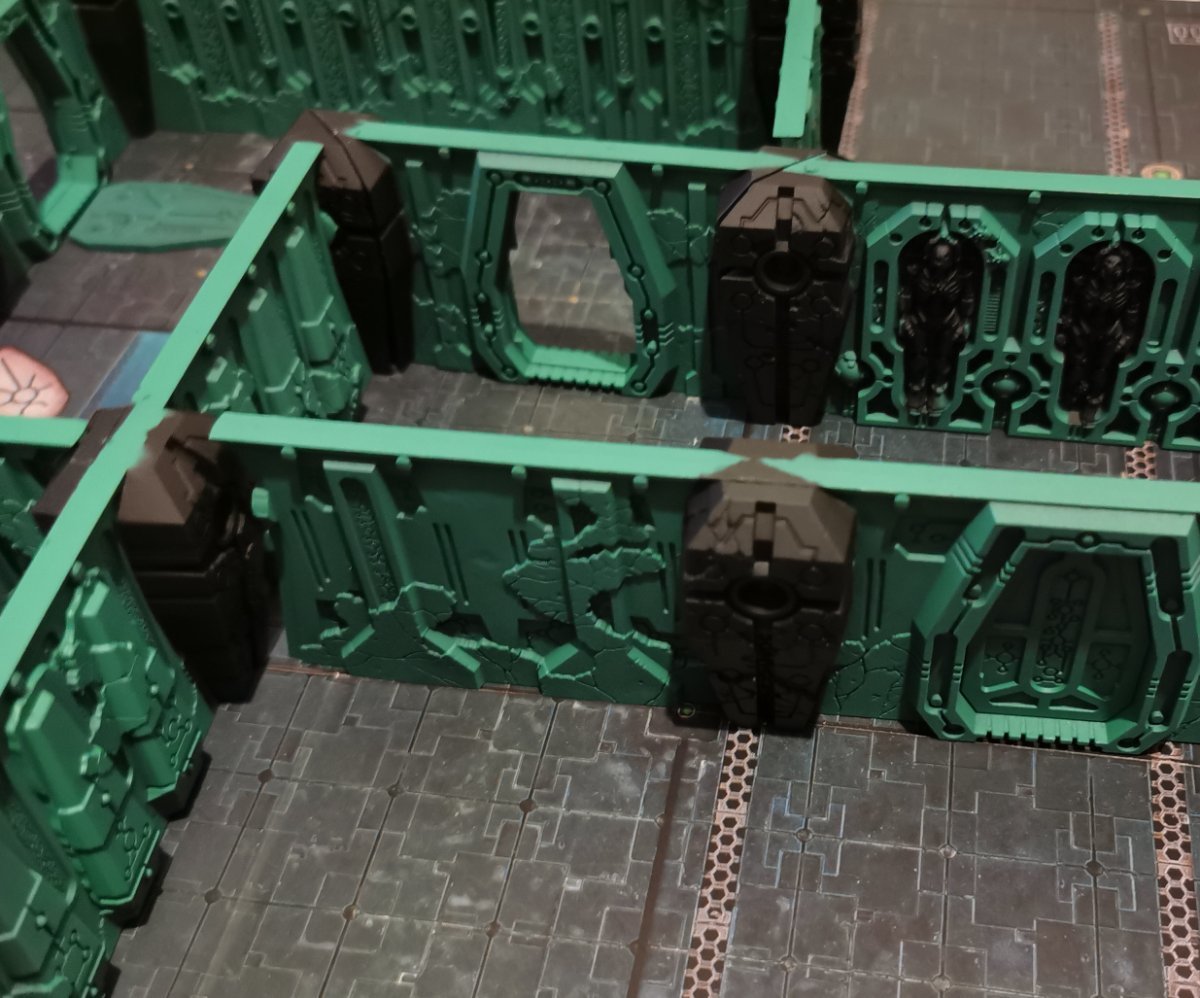 firestorm40k Posted September 18 Author Share Posted September 18 So today I've started painting this terrain set; forstly, prime black, then zenithal two shades of green. For the most part the pieces still fit together well after a coat of paint: There are one or two parts that didn't push together as well as the rest; also, those corner pillars seem to fit loose rather than snug, so they can get pushed apart easily when trying to assemble a wall layout: In the case of the pillars, I don't just think it's to do with paint - they fit at an angle so the force of pushing the other walls together or into them, actually forces the column apart. Next will be adding Wraithbone to the pillars and scatter; my plan is to block in colours, add a wash to everything, then pick out details and glowing bits. Mandragola, zulu.tango, Alby the Slayer and 3 others 5 1 Back to top Link to comment https://bolterandchainsword.com/topic/386679-kill-team-tomb-world-necron-terrain-review/#findComment-6132799 Share on other sites More sharing options...