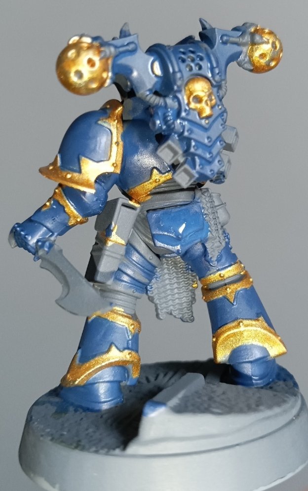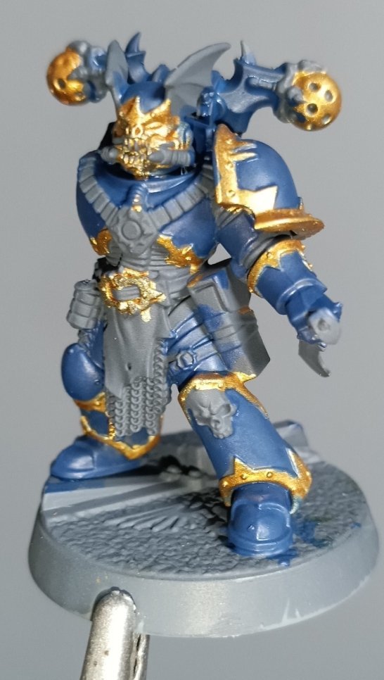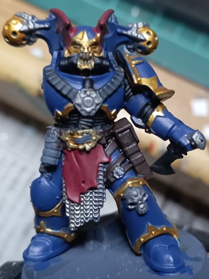 hd3 Posted November 23 Author Share Posted November 23 I've started my Night Lord now. I wanted a model that was distinct from a regular chaos legionary so I used a Nemesis Claw heavy gunner with the unique night lord helmet to help differentiate him. I also wanted to use a sector imperialis base so he could be standing on top of an aquilla. I'm also pleased with how I was able to get his foot to match the raised out of place slab of ferrocrete. He's been primed with pro acryll neutral grey followed by retributor armor for the trim and kantor blue for the base armour. Firedrake Cordova, phandaal, Tallarn Commander and 3 others 6 Back to top Link to comment https://bolterandchainsword.com/topic/387045-the-crusader-host-20-and-a-tyranid/page/3/#findComment-6143620 Share on other sites More sharing options...