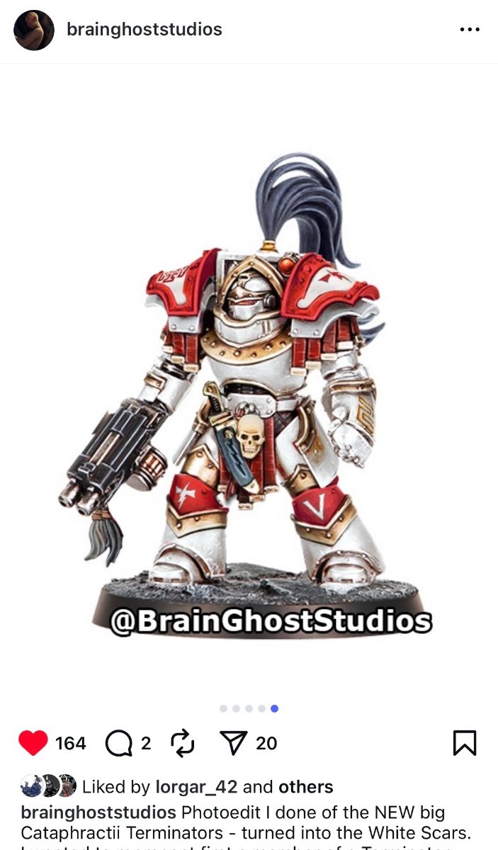 Fire Golem Posted Sunday at 08:29 AM Share Posted Sunday at 08:29 AM BrainGhostStudios on IG has recoloured them as White Scars and I think they look much better. I don’t think the IW scheme is particularly good as a showcase scheme, I thought the same with the Fellblade too. Marshal Loss, The Yak and irlLordy 2 1 Back to top Link to comment https://bolterandchainsword.com/topic/387081-siege-assault-force-plastic-breachers-cataprachtii/page/3/#findComment-6141335 Share on other sites More sharing options...