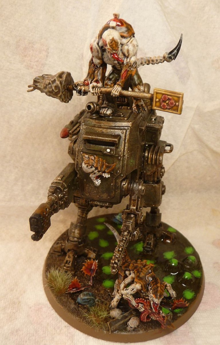 Valkia the Bloody Posted Friday at 05:48 PM Share Posted Friday at 05:48 PM I had been on a 2 year hiatus from the hobby. One thing that brought me back was reading and listening to some Black Library books, among them "Cult of the Spiral Dawn" by Peter Fehervari. In this book, genestealers ride into battle on top of sentinels. This sounded very cool. I needed this. This is one of the reasons I started a Tyranid army (I wanted lots of big monsters, a genestealer cult army is too "horde" for me) and I did a conversion of a genestealer hybrid riding a sentinel (Proxy of a Pyrovore). So this is my model of the year. I had a lot of fun with it. sitnam, kabaakaba, Grotsmasha and 7 others 1 9 Back to top Link to comment https://bolterandchainsword.com/topic/387195-your-model-of-the-year-2025/page/2/#findComment-6145600 Share on other sites More sharing options...