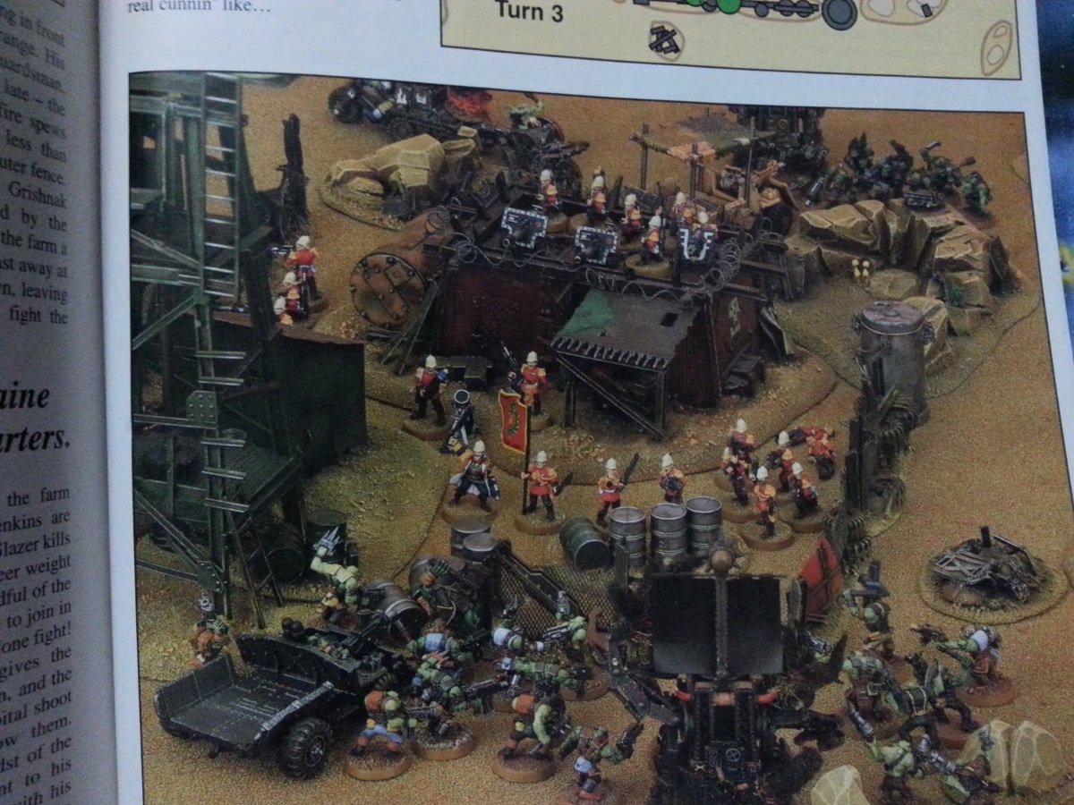 Lexington Posted Sunday at 01:16 PM Share Posted Sunday at 01:16 PM (edited) WD222’s “Last Stand at Glazer’s Creek” is still pretty fondly remembered almost thirty (!) years on. Four linked missions of the newly-created Praetorian Guard regiment defending a small farm from the ravages of Orks in a narrative that was more than just a slight nod to the old war movie, Zulu. The late and lamented Paul Sawyer commanded the Guard, while Adrian Wood brought his own Ork army mostly comprised of Gorkamorka models - which, unbeknownst to us readers, was a preview of the radical re-design that the greenskins would undergo in 3rd Edition 40K just a few months later. Brilliant models and terrain, a great little story driving the games and writing that showed real personality. Might still be the best battle report ever put to WD’s pages. Edited Sunday at 01:17 PM by Lexington Calibanite Knight Angel, ZeroWolf, Dr. Clock and 4 others 7 Back to top Link to comment https://bolterandchainsword.com/topic/387359-reminiscing-about-old-white-dwarf-magazines/#findComment-6149892 Share on other sites More sharing options...